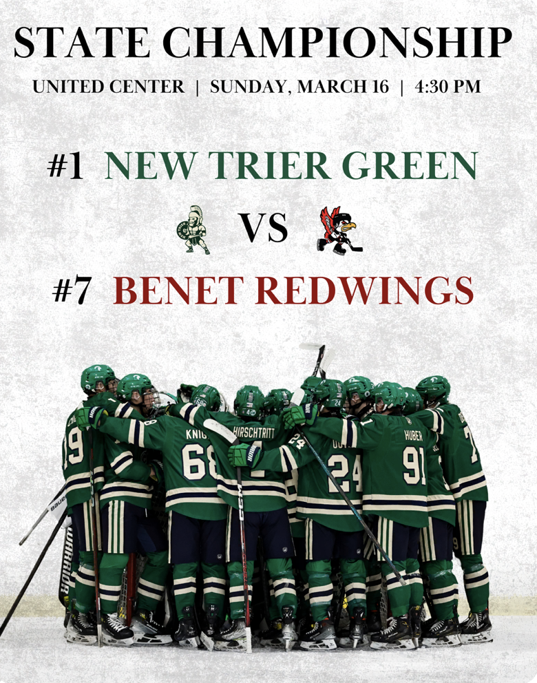Congratulations to the boys' New Trier club hockey Green team for advancing to the state championship! They are defending their state title and going for a three-peat.