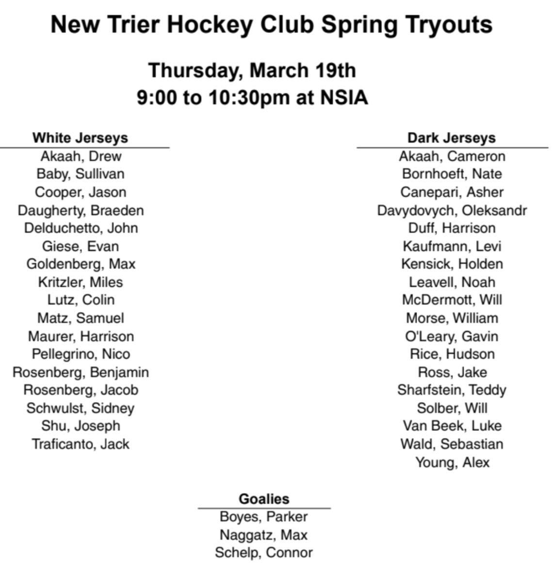 Spring 2026 Tryout Groups for Thursday, March 19th